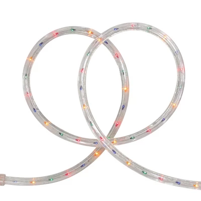 Enhance any space with our 18′ multicolor holiday rope lights, perfect for both indoor and outdoor use. Flexible and easy to install, they come with mounting clips, zip-ties, and screws for secure placement wherever you need them. Whether for seasonal decorating or year-round ambiance, these incandescent rope lights deliver reliable, bright illumination to enhance your home or event. Enjoy the convenience and charm of versatile holiday lights designed to brighten every setting.Product Features:Light color: multicolorMulti-color consists of red, blue, green and amber bulbsTube color: clearBulb type: incandescentSpacing between each bulb: 1″Total length: 18’Approximate thickness: 0.5″ diameter (13mm)8″ lead cordAdditional Product Features: End connectors with the same opening of 0.5″ allow you to connect multiple sets together (not to exceed 210 watts)Includes mounting clips, zip-ties and screws for easy placementWire gauge: 18″120 volts, 60 hertz, .3 amps, 36 wattsUL certified and listed for indoor or outdoor use Material(s): plastic/wire