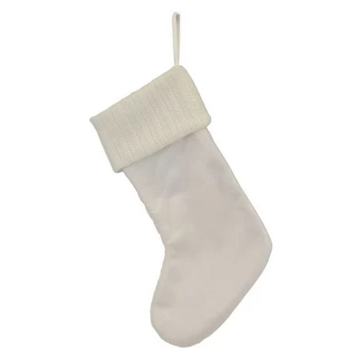 - This white plush knit stocking hangs perfectly from a mantle