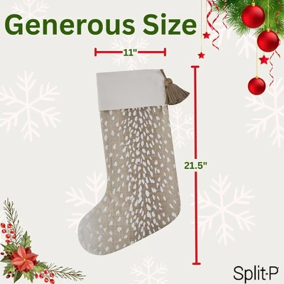 Introduce the beauty of nature into your neutral holiday decor with our printed stocking featuring an endearing fawn deer pattern. The decorative tassel accent paired by the printed fawn deer pattern in soft beige tones captures the grace of wildlife, creating a serene and inviting atmosphere reminiscent of a countryside farmhouse. Embrace the warmth of country living with subtle festive charm through this delightful addition to your Christmas decorations! Whether displayed on a fireplace mantel display or draped from your favorite stocking hanger, this addition will reflect the cheerful excitement of the winter season.