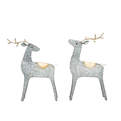 - Elevate your holiday decor with the Transpac Metal Corrugated Reindeer Decor Set of 2, featuring stylish silver reindeer figurines perfect for Christmas tabletop displays, each measuring 16″ in height and crafted from durable metal for easy care.
